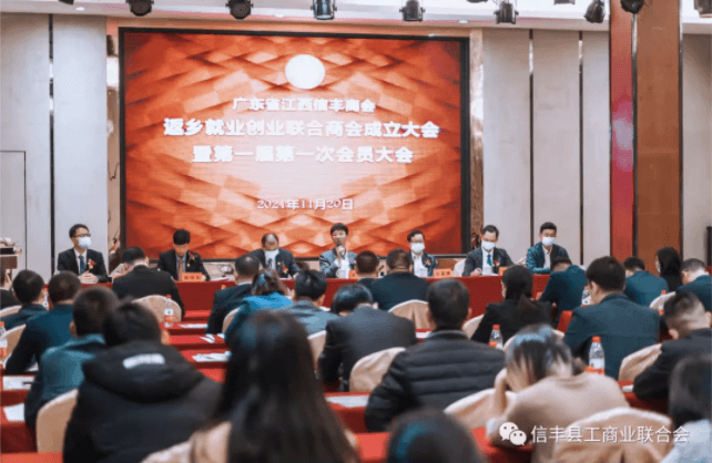 臍橙滿樹似黃金,橙香四溢飄萬里。11月20日,廣東省江西信豐商會返鄉(xiāng)就業(yè)創(chuàng)業(yè)聯(lián)合商會舉行成立大會暨第一次會員大會??h委常委、統(tǒng)戰(zhàn)部長李紹武,縣政協(xié)副主席、工商聯(lián)主席宋裕華、縣委統(tǒng)戰(zhàn)部分管日常工作的副部長李賽香,縣委統(tǒng)戰(zhàn)部副部長、縣工商聯(lián)黨組書記、常務(wù)副主席郭昌福,各縣直部門負(fù)責(zé)人、鄉(xiāng)鎮(zhèn)黨委書記,廣東省江西信豐商會會長袁勇、執(zhí)行會長黃學(xué)平、廣州分會候任會長王明富、深圳分會會長葉昌友、惠州分會會長鄒貴春、秘書長蘇有華等嘉賓、會員朋友們共計(jì)300余人先后參加揭牌儀式、成立大會和慶典晚宴系列活動。