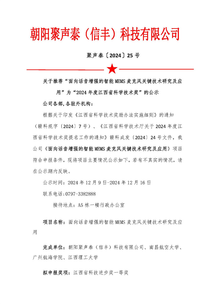 • “面向話音增強的智能 MEMS 麥克風(fēng)關(guān)鍵技術(shù)研究及應(yīng)用”的公示